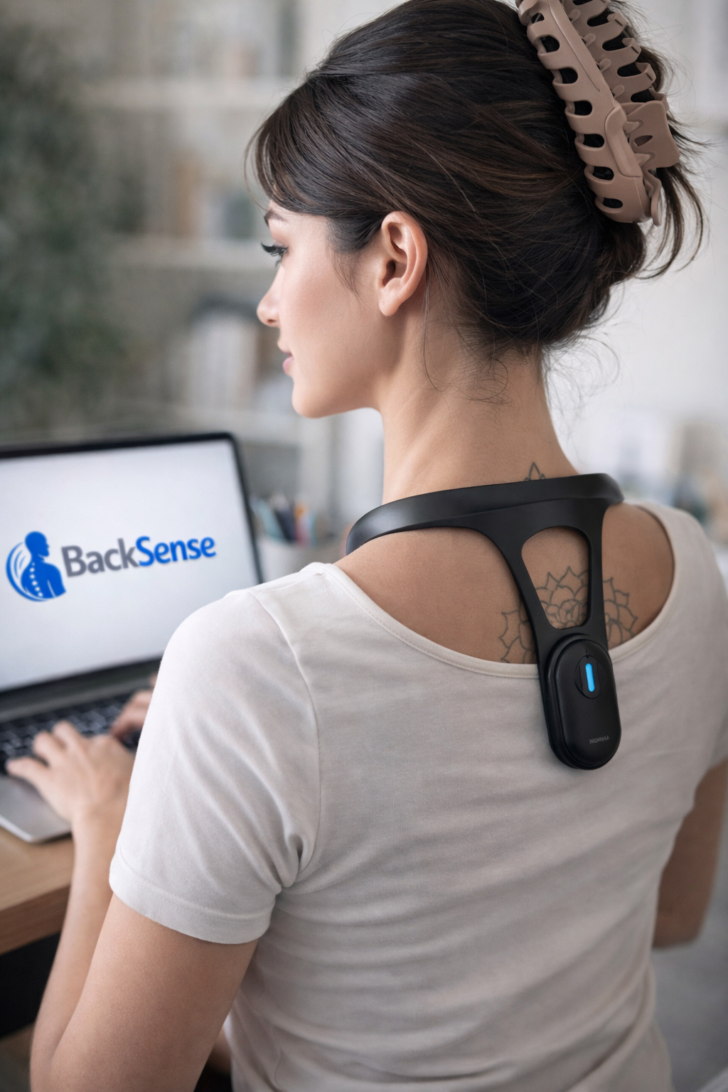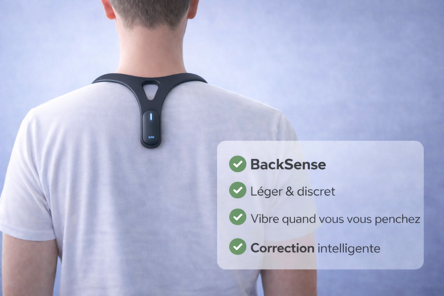 BackSense vous aide à garder le dos droit au quotidien grâce à un capteur intelligent, discret et facile à porter.